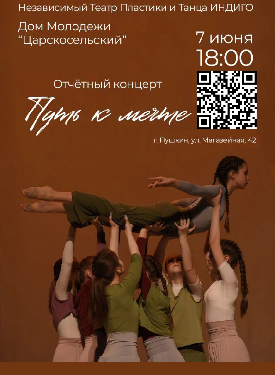 Мы с радостью приглашаем вас на наш отчётный концерт, который состоится 7 июня в 18.00 на сцене Царскосельского Дом Молодёжи!